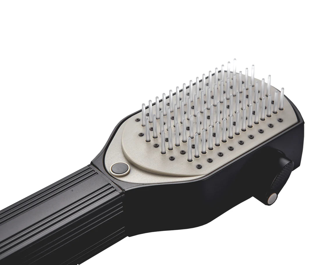 Für eine Haarbehandlung wie im Salon: Befeuchten Sie Ihr Haar, tragen Sie ein feuchtigkeitsspendendes Haarprodukt auf und verteilen Sie es gleichmäßig mit den Borsten. Massieren Sie anschließend die Kopfhaut mit Hochdruckwasser für ein ultimativ wohltuendes Erlebnis.