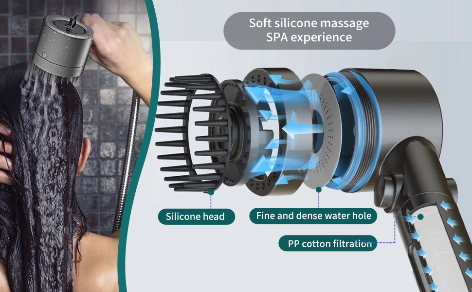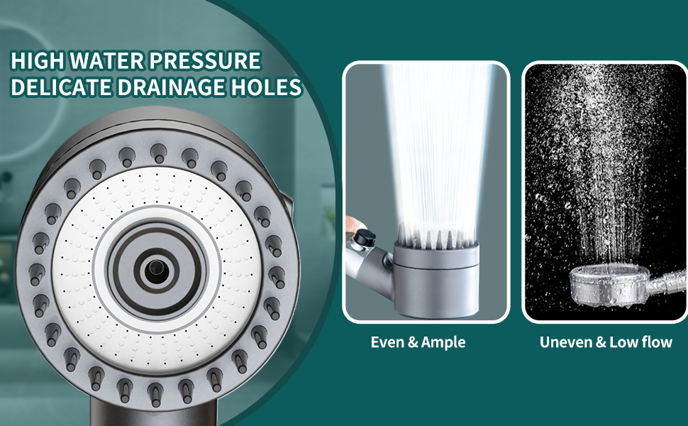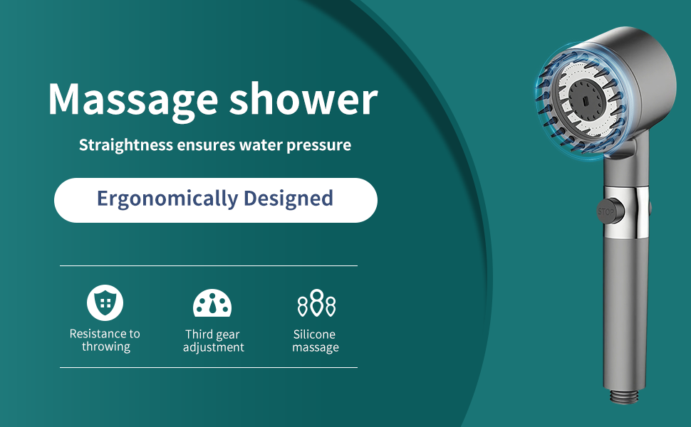 Es verwendet einstellbare Düsen, um verschiedene Wasserdruckeinstellungen zu erzeugen und sorgt so für einen entspannenden Massageeffekt während des Duschens.